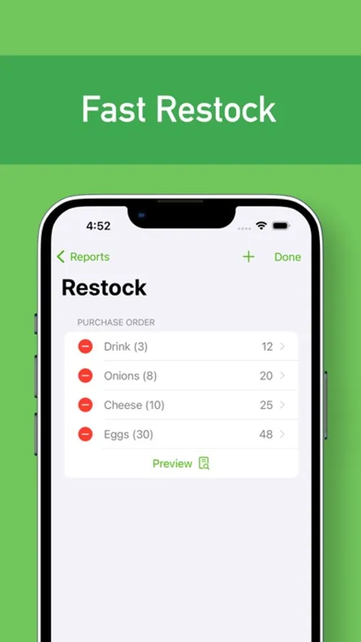 • Smart Restocking: Get automatic alerts when supplies run low, ensuring you never run out or overstock.