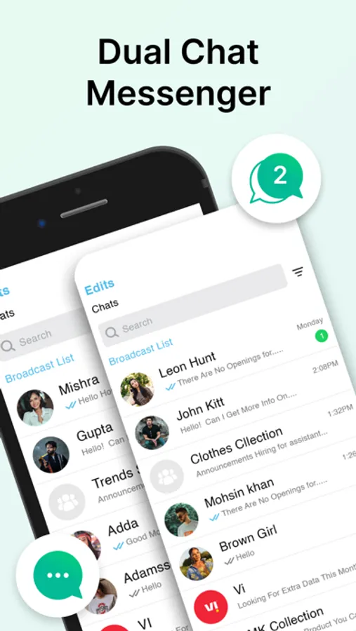 WA Dual Chat replicates the conversations and messages that you send and receive on your phone, exactly like the web version of your preferred social media application. You still have access to the original texts kept on your phone, so everything is in sync.Put your privacy first with the Screen Lock feature, which offers excellent data security. Use your phone's passcode, Face ID, or Touch ID to quickly unlock it.