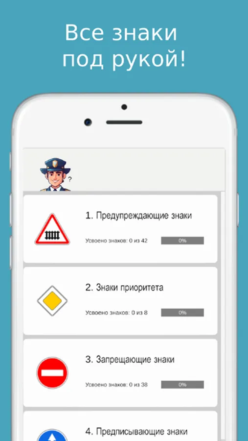 Дорожные знаки - это мобильное приложение для изучения дорожных знаков ПДД, это удобный и эффективный инструмент, который поможет вам освоить и запомнить все необходимые дорожные знаки.