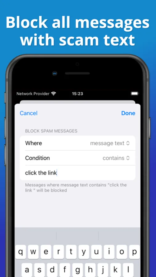 BLOCK SCAM MESSAGES WITH SPECIFIC TEXT