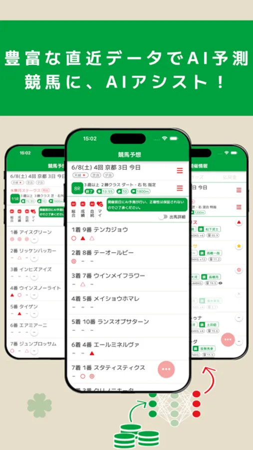 このアプリの競馬予想機能は、AI(人工知能)によって提供されるものであり、