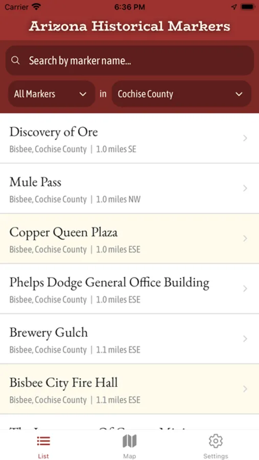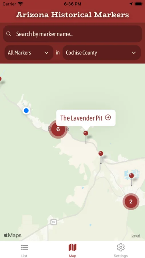 - Navigate Arizona's historical markers with ease, using an intuitive interactive map to pinpoint markers near you or explore regions you plan to visit. Prefer a list? This app has you covered, allowing you to scroll through markers (sorted to highlight the markers nearest to you, if you enable location permissions) and select those that pique your interest by marking them as favorites.