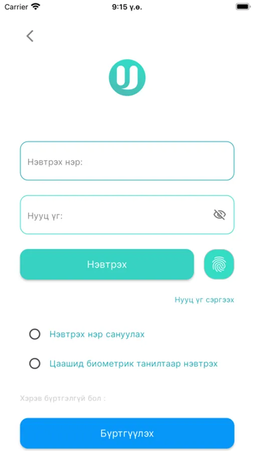 1. Ufinance eline аппликейшнийг App store-c татаж авч болно, Шинэ хэрэглэгч бүртгүүлэх цэсний холбогдох мэдээллүүдийг үнэн зөв бөгөлж баталгаажуулна