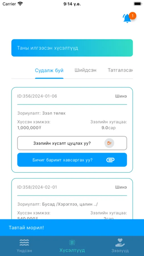 3. Та хэрэгцээтэй үедээ манай аппликейшнд хандан санхүүгийн хэрэгцээгээ хангах боломжтой.