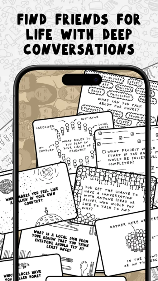Unlock the magic of meaningful connections with the App DeepDive! Designed for everyone who craves deeper connections, DeepDive offers an intuitive way to bypass small talk and dive straight into the heart of conversation. Choose from a variety of themed decks—like "Space Taxi" for new acquaintances, "Roots and Wings" for unique interactions, and "3 AM Talks" for really tough questions—to find friends for life, no matter where you are or who you're with.