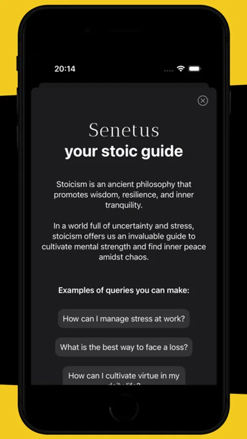 - Specialization in Stoicism: Unlike other apps, Senetus focuses exclusively on providing advice and responses based on Stoicism.