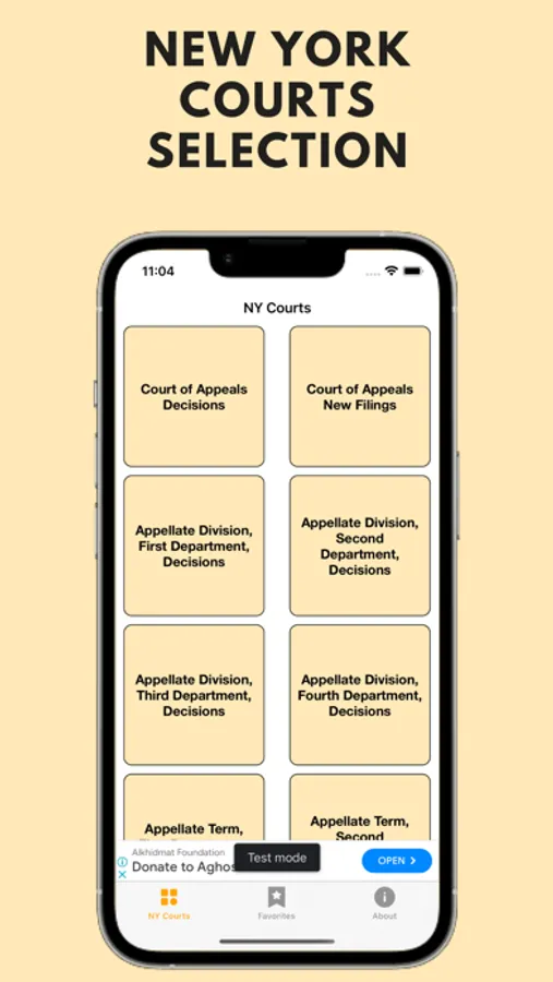 "Disclaimer: This app is not affiliated with any official organization and does not offer legal advice. It provides access to New York court cases for informational purposes only."