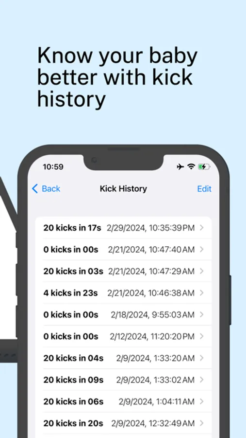 - Track Progress Over Time: With our comprehensive history feature, monitor your baby's activity patterns, kick counts, and the time it takes to hit your daily targets. This valuable insight can help you understand your baby's habits and well-being, making every moment of anticipation filled with love and knowledge.