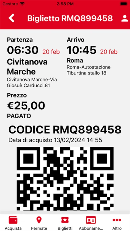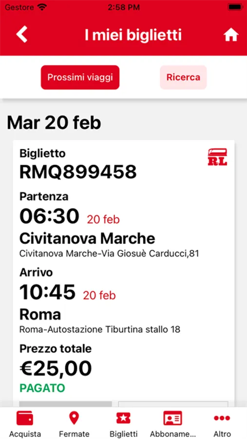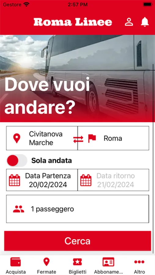 Questa app ti permette di cercare ed acquistare le soluzioni di viaggio, di visualizzare i tuoi biglietti, di visualizzare il QRCode del biglietto per la validazione a bordo, di effettuare le operazioni di annullamento e cambio data sui tuoi biglietti e di ricercare le fermate intorno a te!