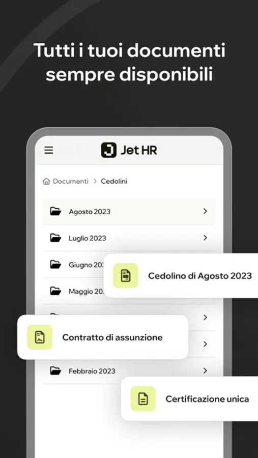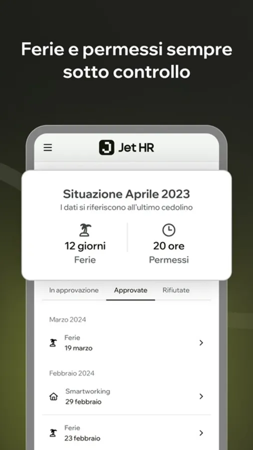 Con l'app di Jet HR, richiedere ferie, gestire le spese e consultare le tue buste paga diventa un gioco da ragazzi.