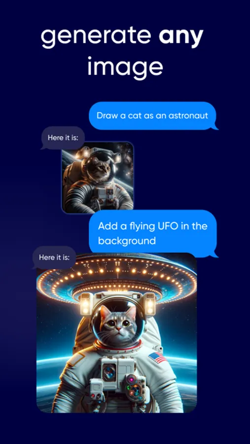 Use WhatsThat to answer your questions, identify anything and everything under the sun, solve problems, and generate artworks with a simple text prompt. WhatsThat lets you take advantage of the limitless power of AI - all in one tap.