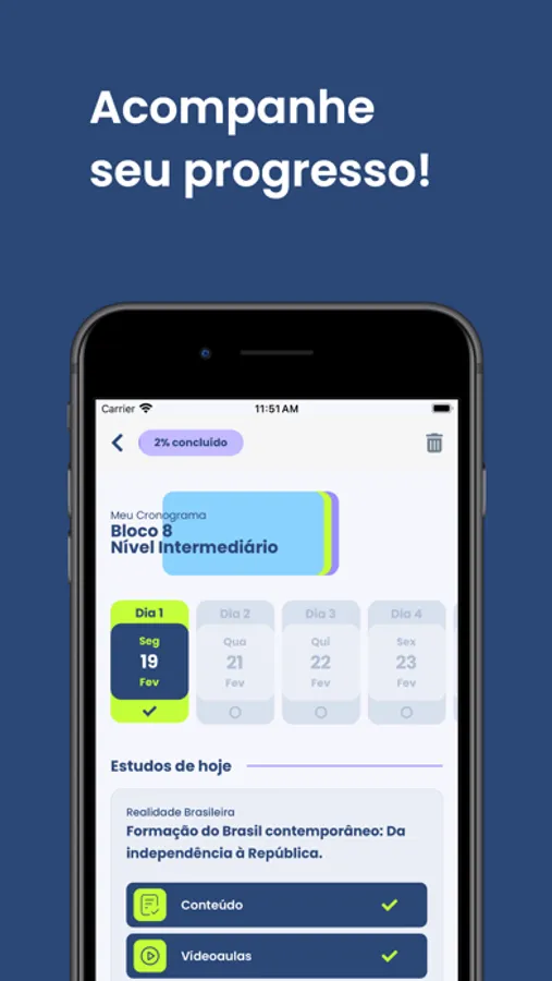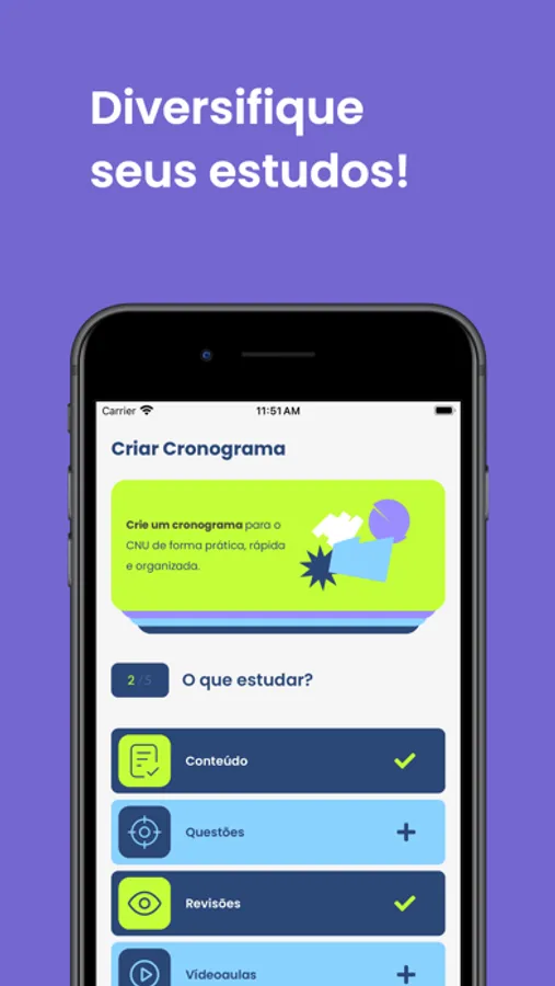 - Plano de estudo inteligente e personalizável