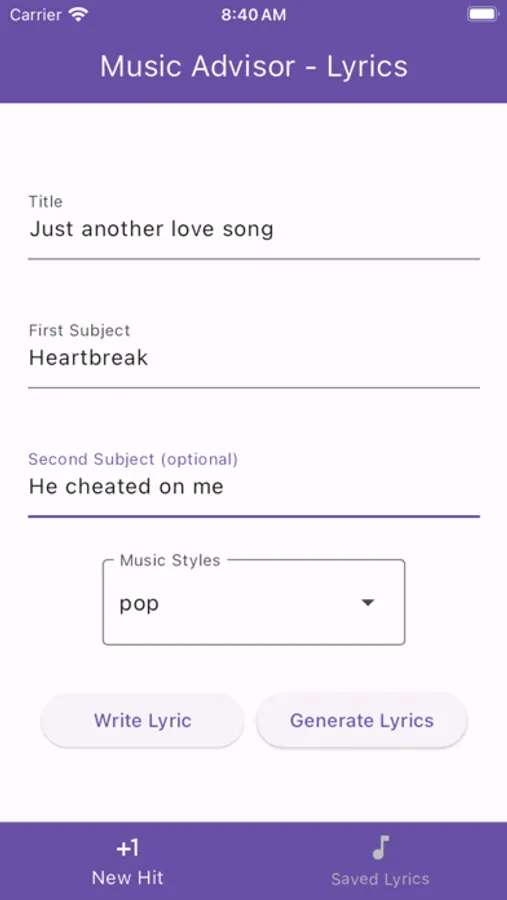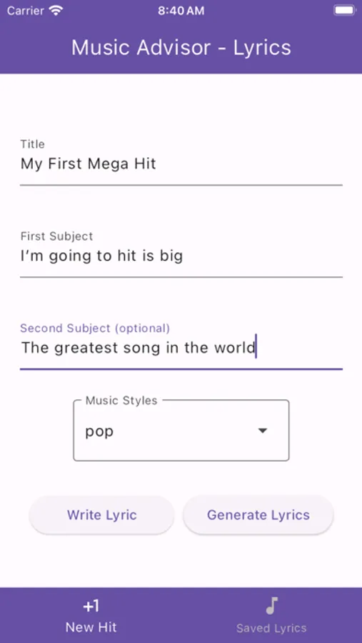 Genre Versatility: Whether you're into pop, rock, hip-hop, or country, our app generates lyrics that fit any style.