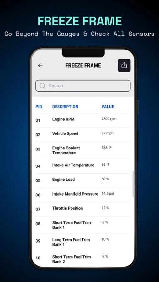 - Vehicle ECUs vary in the amount of sensors supported. This app can’t show you something that is not provided by your car.