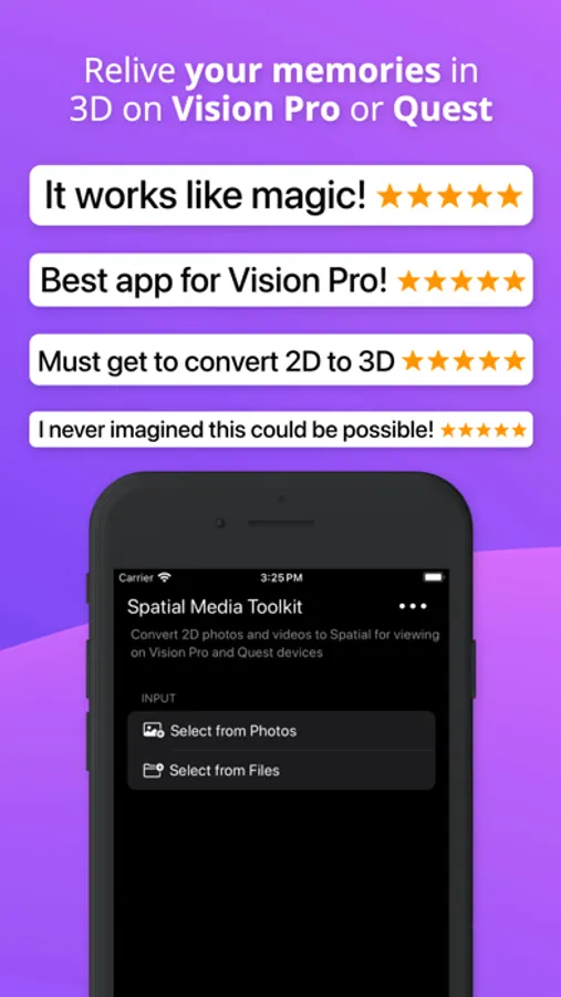 Convert on the go and send to your Vision Pro or Quest for viewing later.