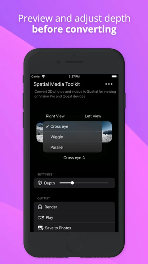 - Convert side-by-side and top-and-bottom VR media to Spatial