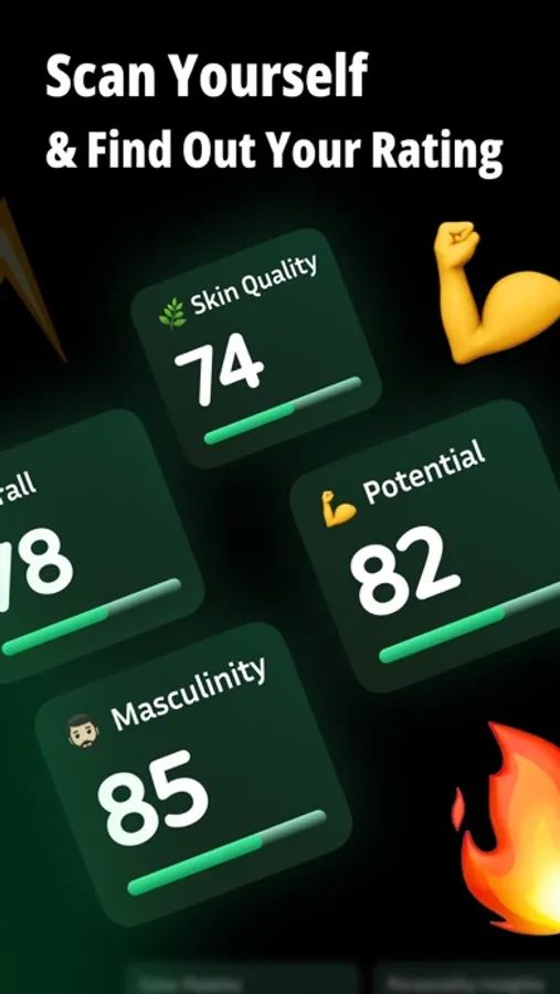 Customized Character Assessments: Utilizing advanced AI, we analyze your photos to offer detailed evaluations on various appearance criteria such as Masculinity/Femininity, Overall Potential, Skin Quality, Jawline, and Cheekbones. Each aspect is meticulously scored to guide you in understanding your unique physical attributes.