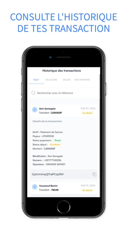 • Grace à l’application, vous pouvez consulter l’historique de vos transactions pour un meilleur suivi de vos finances dans votre application