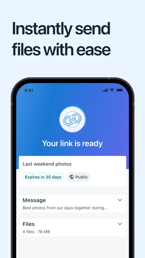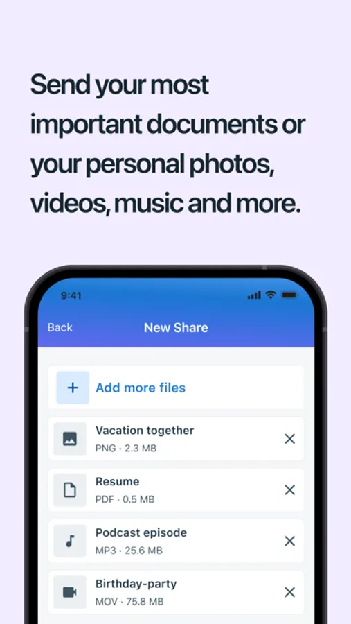 But wait, there's more! Our app not only makes file sharing a breeze, but also ensures that your data is safe and secure. We understand that your files are precious, and the last thing you want is for them to fall into the wrong hands. We take privacy seriously, so you can Share with confidence knowing that your files are protected. With end-to-end encryption, you can share files with confidence, knowing that only the intended recipients will have access.