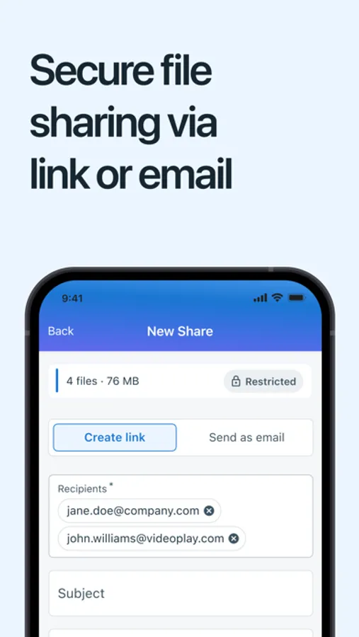 Say goodbye to the hassle of file sharing and hello to a simpler, more efficient way of collaborating. Download our app and join the happy users who have discovered the joy of hassle-free file sharing. Trust us, once you go mobile, you'll never look back. It's time to make file sharing fun, fast, and hassle-free!