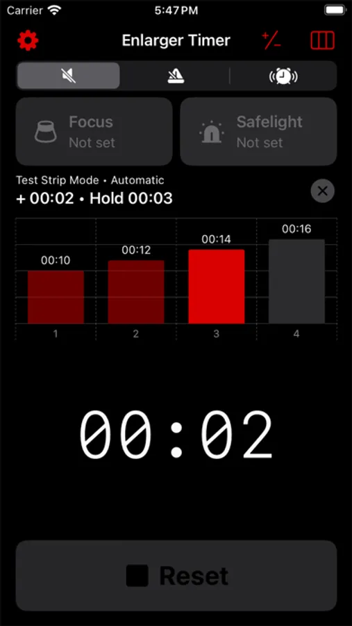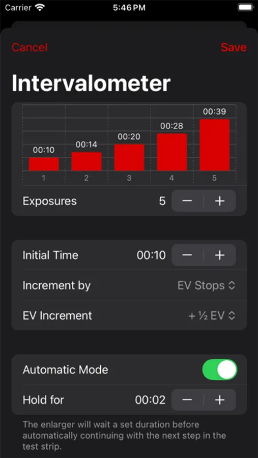 - Automatically create test strips with incremental exposures, and keep track of exposure times using a handy graph