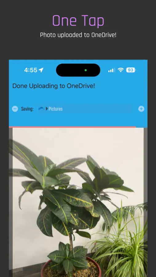 • Photos you take get uploaded to your OneDrive folder instantaneously.