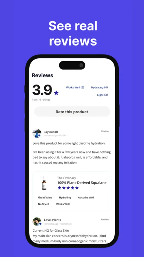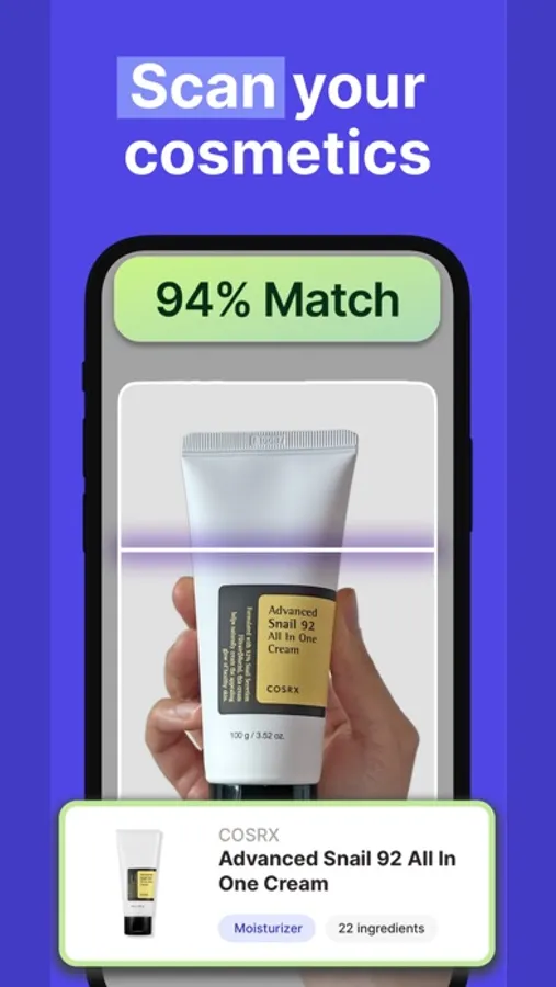 Snap a photo of a product to see if it's good for your skin. We cut out the fluff and tell you what the ingredients really do. Save time and money by avoiding products that don't align with your skin goals. Our scanner is backed by scientific research so you can get the facts, and only the facts. Be empowered to confidently choose products that will work for your skin.