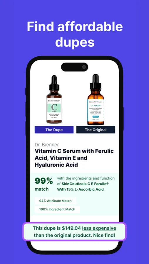 SkinSort has the most accurate and up-to-date product database. Discover new favorite products with our powerful filters. Stay clear of products that contain ingredients you want to avoid. Unsure about two products? Compare them side-by-side to figure out the best one for you. Found a product you like but it'll break your bank? Don't worry, our AI algorithm has already found dupes for you. Plus, read reviews from real people to see if a product is all hype or the real-deal.
