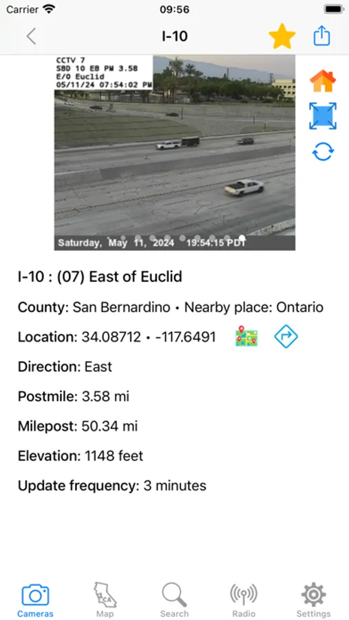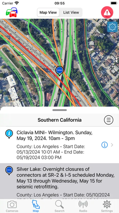 Live Traffic Cameras in CA provides real-time access to traffic and traveler information supplied by the California Department of Transportation (Caltrans). Using this app, you can check traffic jam, travel alerts, road conditions, road closures and highway cameras before driving.