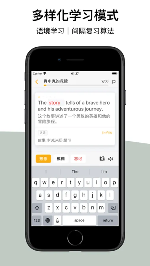 5. 多种学习模式。提供多种单词学习方式,“列表模式”帮助快速学习词汇,“词卡模式”帮助深度学习。同时,“翻译句子”“句子分析”等功能辅助你理解原文。