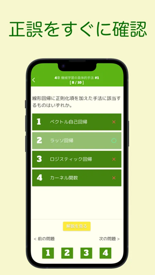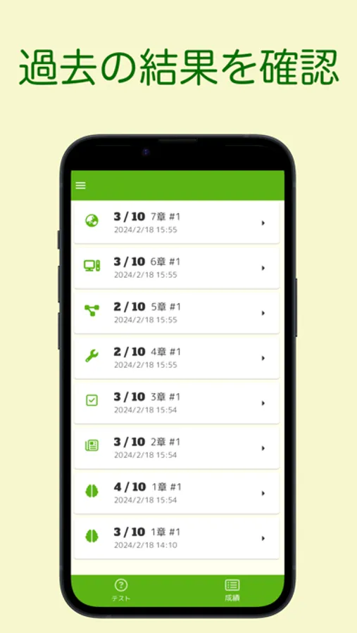 進捗状況をステータスバーにて確認し、誤った問題/未実施のみを効率よく学習できます。