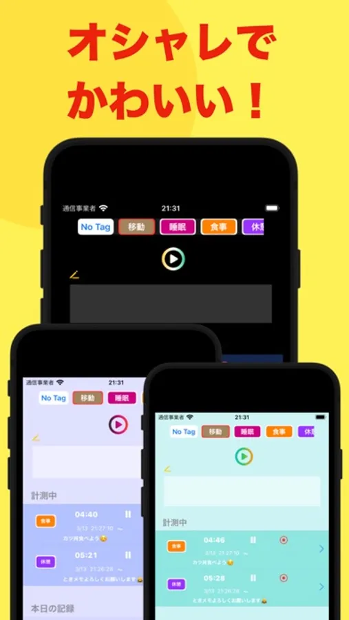 アプリがオフやバックグラウンドでも時間計測が可能。計測中にうっかり停止する心配もなし。