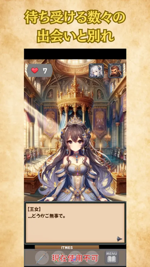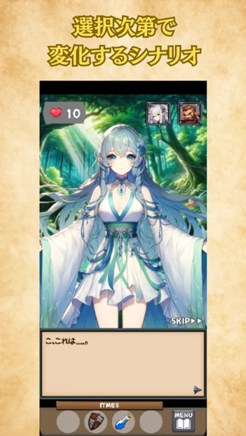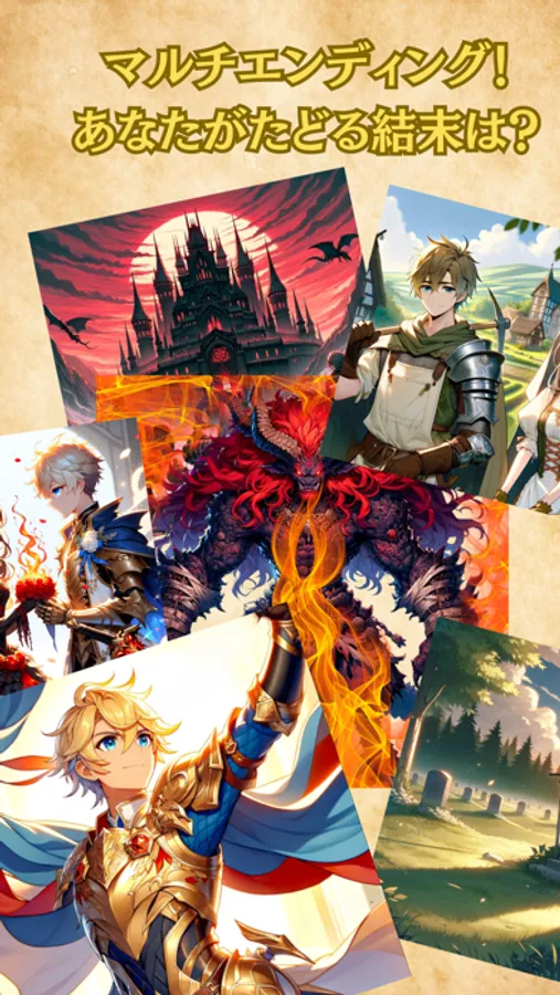 剣と魔法の世界を舞台にした王道ファンタジーのシンプルなニ択式RPG。