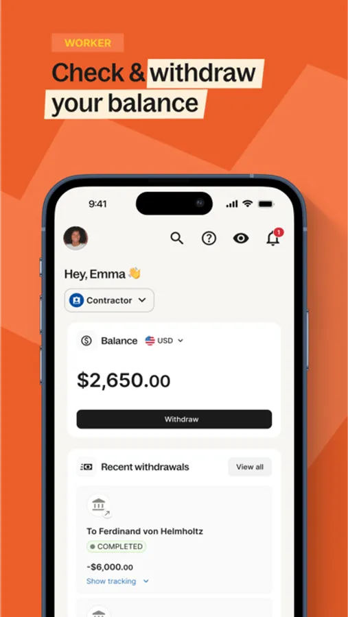 Access all of Deel’s features right from your mobile, whether a business or a worker, and handle time-sensitive tasks on the go—right from your phone.