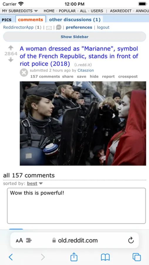 Reddirect also (optionally) optimizes the old reddit experience for iOS devices: