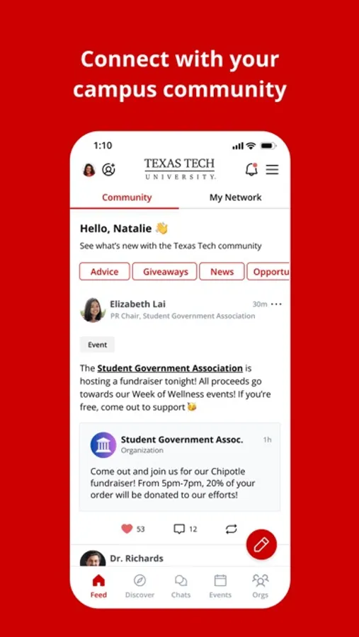 See what’s happening at Texas Tech in one place! Navigate events, student organizations, and resources in this easy-to-use app.
