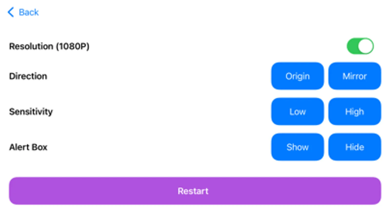 3. Set the 1080P/720P clarity image output of the camera head through the app menu