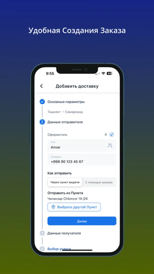 Удобный заказ: Быстрое оформление заказа на отправку посылок всего несколькими касаниями.