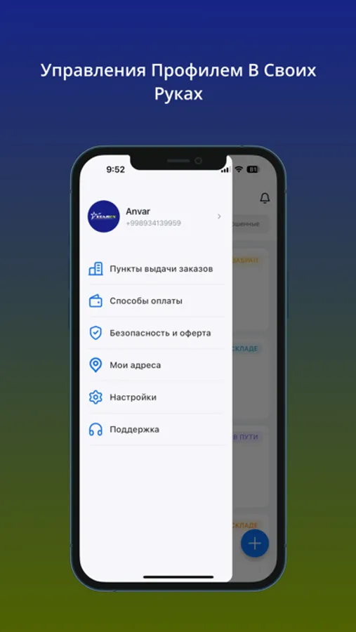 Уведомления: Получайте своевременные обновления о статусе вашей посылки с помощью push-уведомлений.