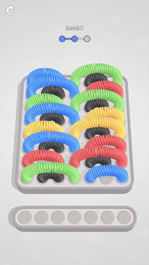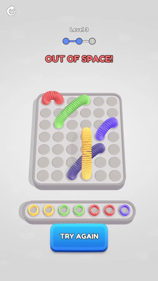 Navigate through a colorful board filled with tangled slinky toys, each with its unique shape and vibrant color.