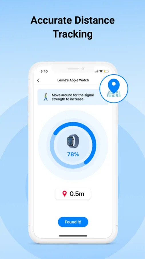 Move around, and witness the Distance Meter score update in real-time, guiding you towards your lost device.