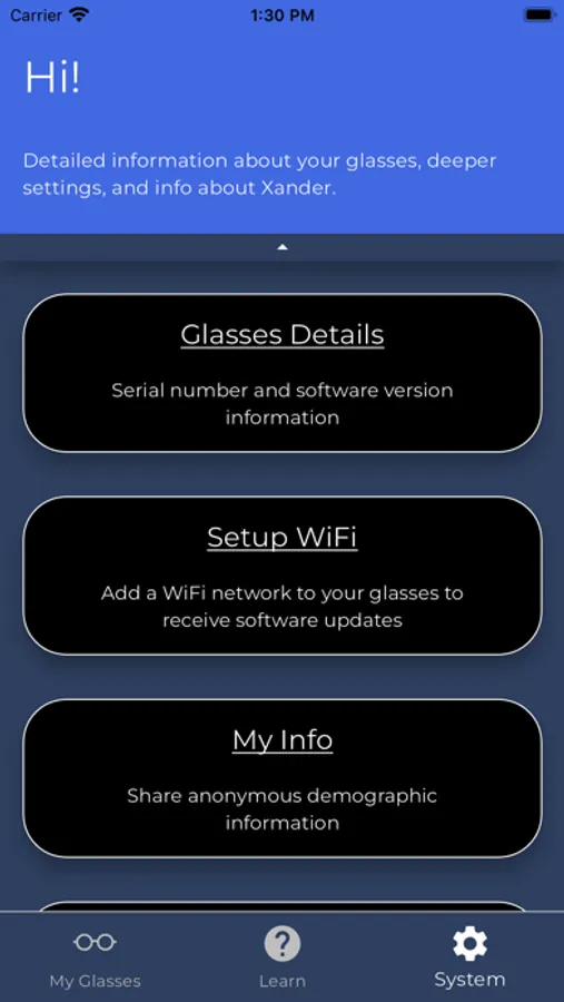 You can also use the XanderGlasses Companion app to setup WiFi on your glasses to receive free updates directly onto your glasses. These updates include features performance optimizations, and bug fixes.