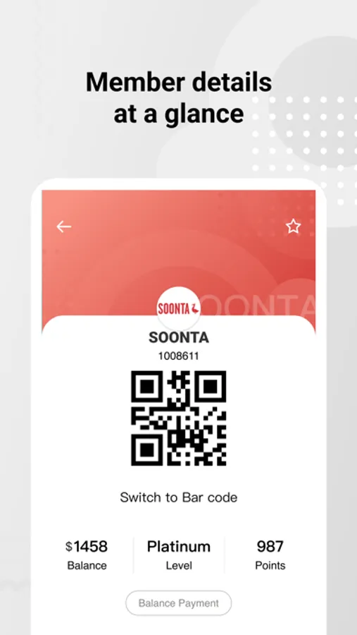 Manage your loyalty member information and enjoy a variety of member services (points, coupons, birthday gifts, event promotions, etc.) provided by the Soonta. Follow your consumption information in real time.