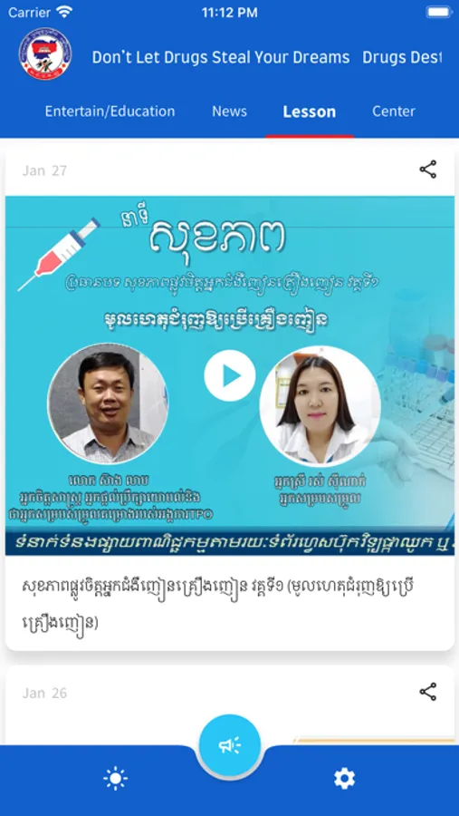 NoDrug mobile application is an educational application designed for public users to learn more about drugs. User can use this application to see educational video, message, news and articles to gain more knowledge about the bad impact caused by drugs. This will help users to prevent themselves from drugs. In addition, through this app, users can also reports about any drugs activities to the authority to request to action support to solve drugs problems in their community.