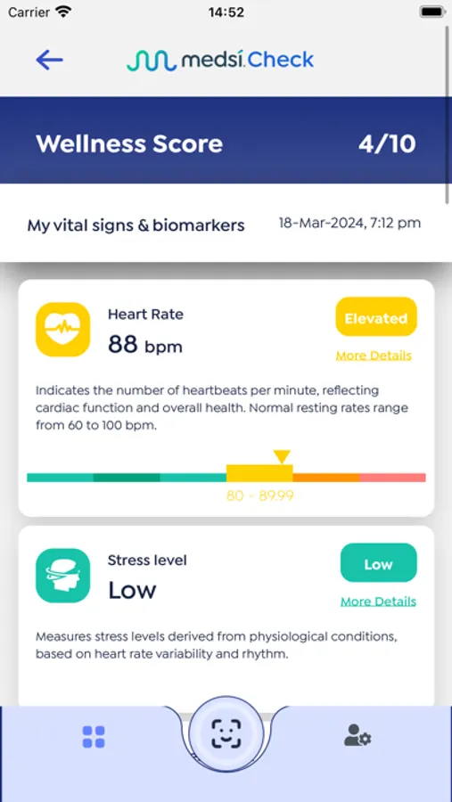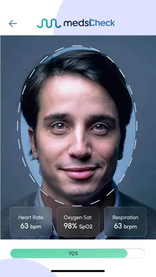 MedsiCheck uses rPPG technology for contactless spot checks (via the front-facing camera).