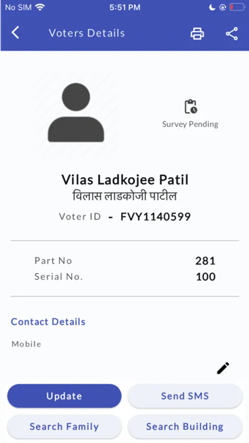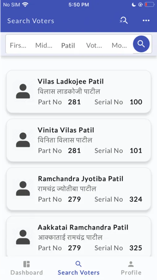 4. Search voters by their first name, middle name, last name, voter ID, and mobile number