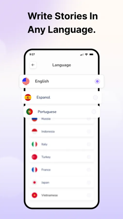 2. Multiple Languages: This AI story writer is capable of writing stories in “Ten Languages” including, English, Portuguese, Spanish, Indonesian, Russian, French, Japanese, etc.