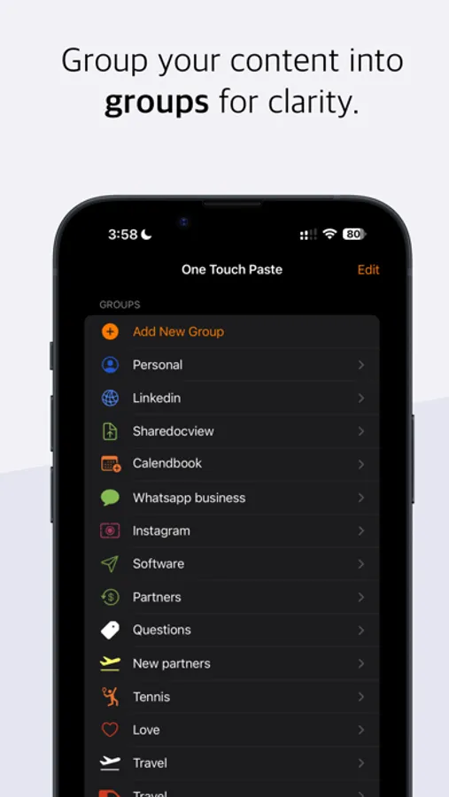 The One Touch Paste keyboard lets you paste text clips and snippets into any app, at any time.