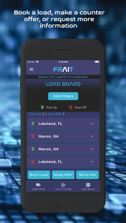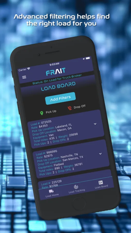 FRAIT's Load Board easily connects shippers with carriers, streamlining the cargo matching process. The user friendly filtering options simplifies finding and securing a load that tailors to your preferences.