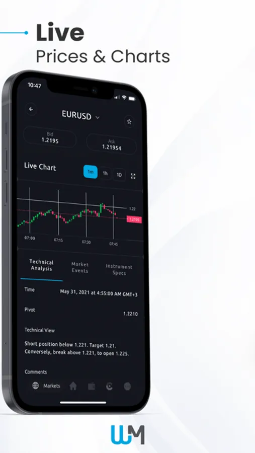 Start your trading journey with the WM Markets app. Set up your trading accounts, manage your balances on the go, and stay informed of the latest market movements.